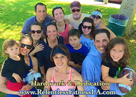 We take a personal training approach to our classes, using the most advanced training techniques. It's a one hour non-stop, heart-pumping cardio workout. We use a variety of equipment such as free weights, resistance bands, rope undulation, medicine balls and more. It's a fun, challenging workout done in a very safe, family-style atmosphere. Come be a part of our Relentless Fitness Family!